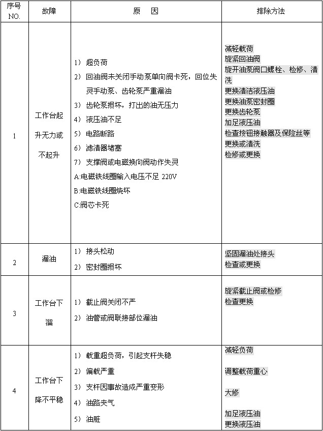 7、當平臺出現(xiàn)故障時應及時切斷動力電源進行維修。